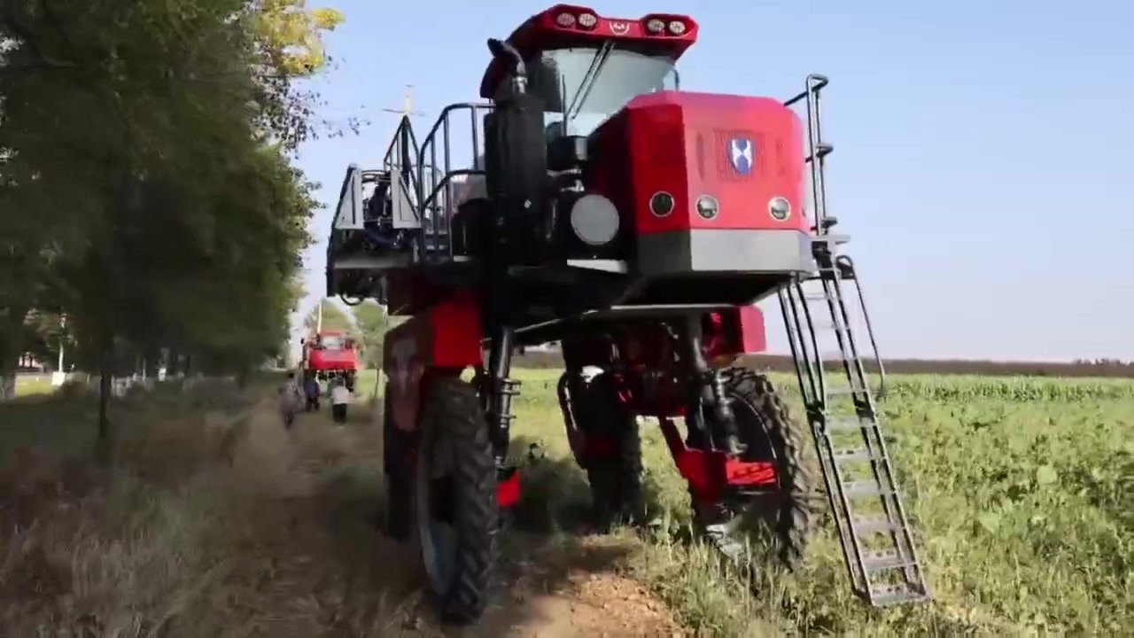 华玺自走式喷杆喷雾机大型玉米打药机作业视频